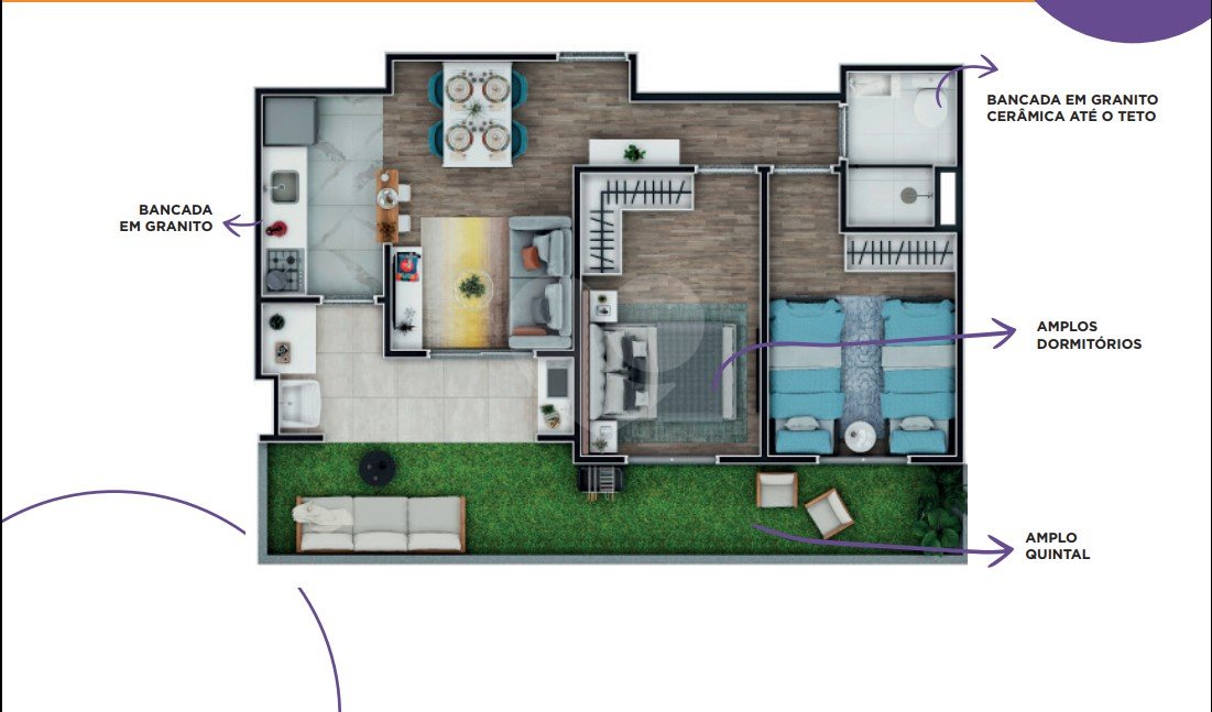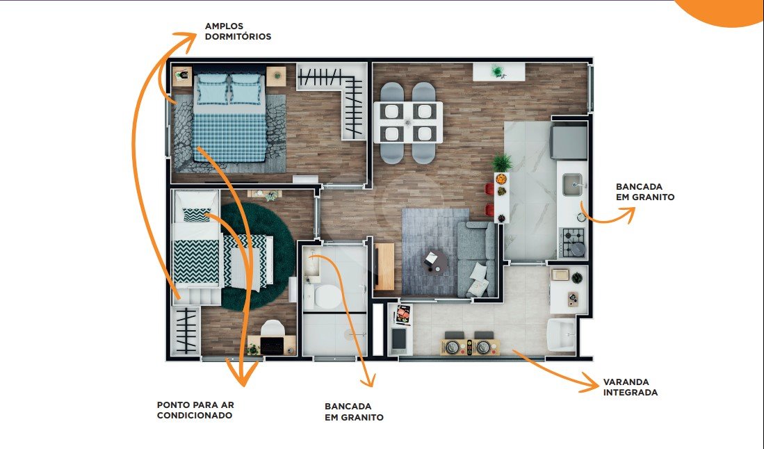 Apartamentos de 62,32m² – Ideal para casais ou pequenas famílias que desejam mais espaço e funcionalidade.