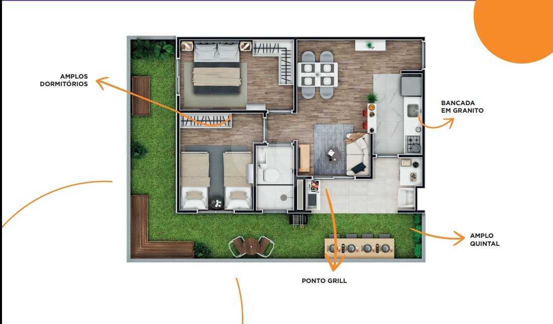 Infraestrutura completa para lazer e segurança: piscina, academia, salão de festas, espaço gourmet e playground