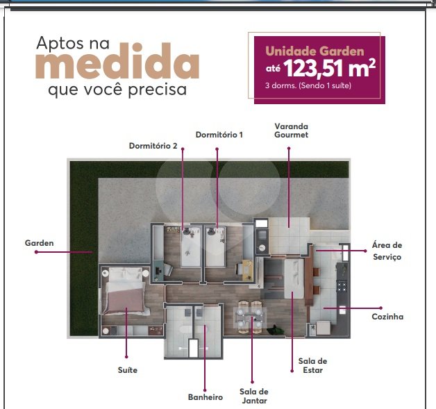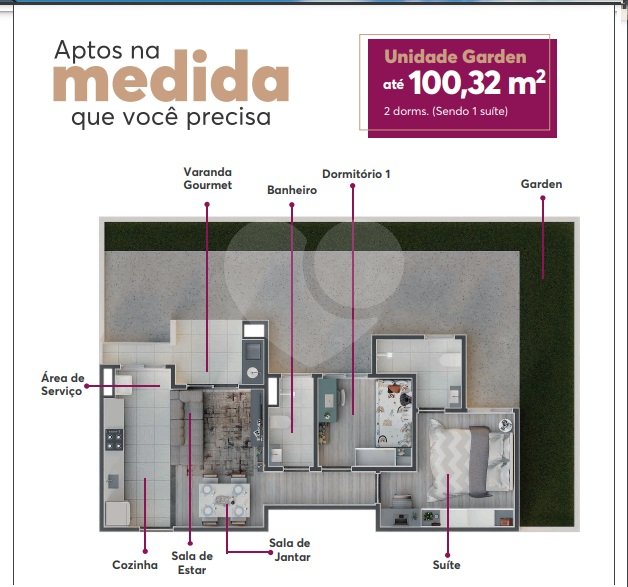 Oferecemos apartamentos de 2 e 3 dormitórios, com ou sem Garden, em uma localização privilegiada. Com infraestrutura completa, Boulevard exclusivo, segurança e conforto, esse é o lugar ideal para viver momentos inesquecíveis, pensado nos mínimos detalhes para oferecer conforto e qualidade de vida.